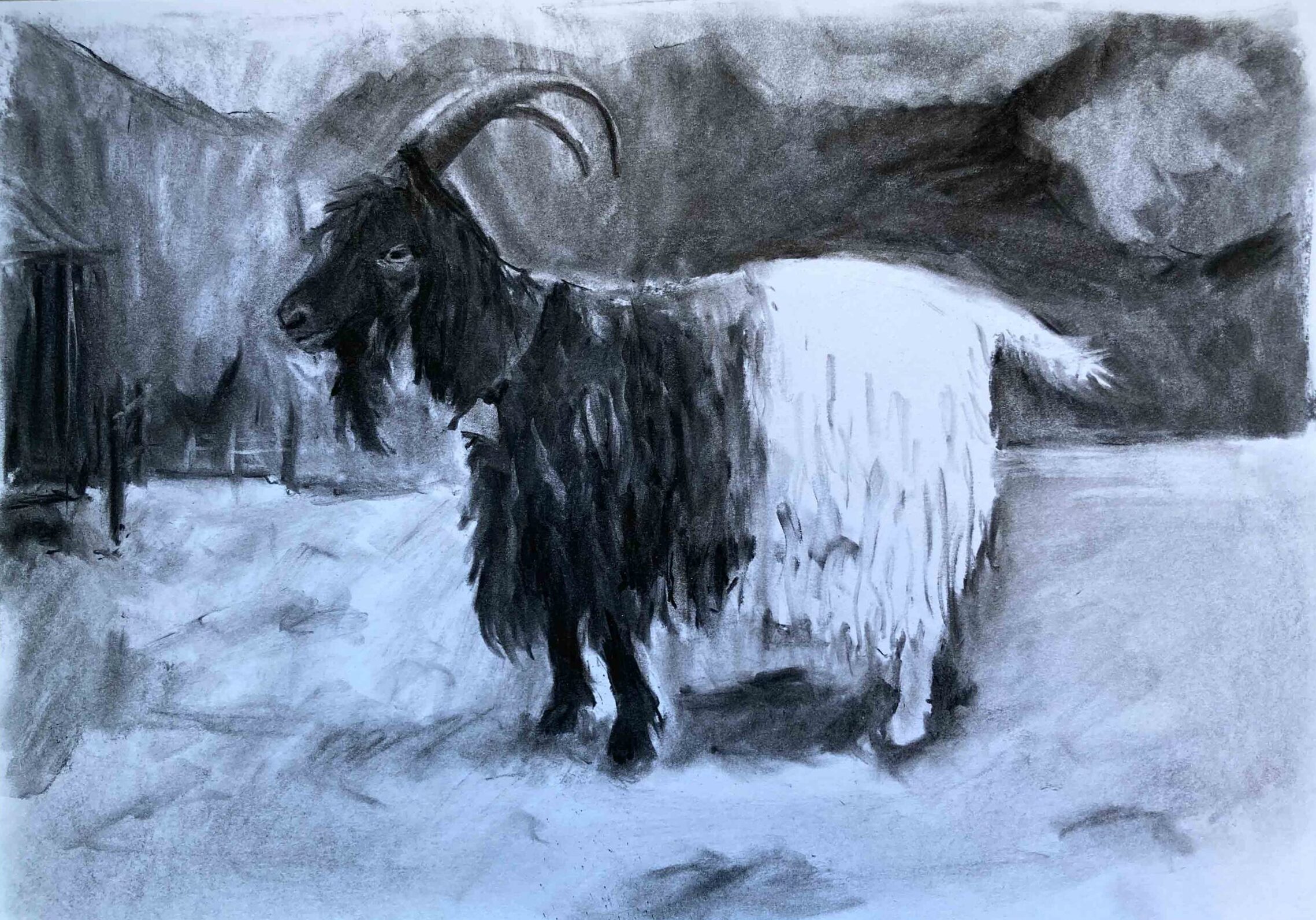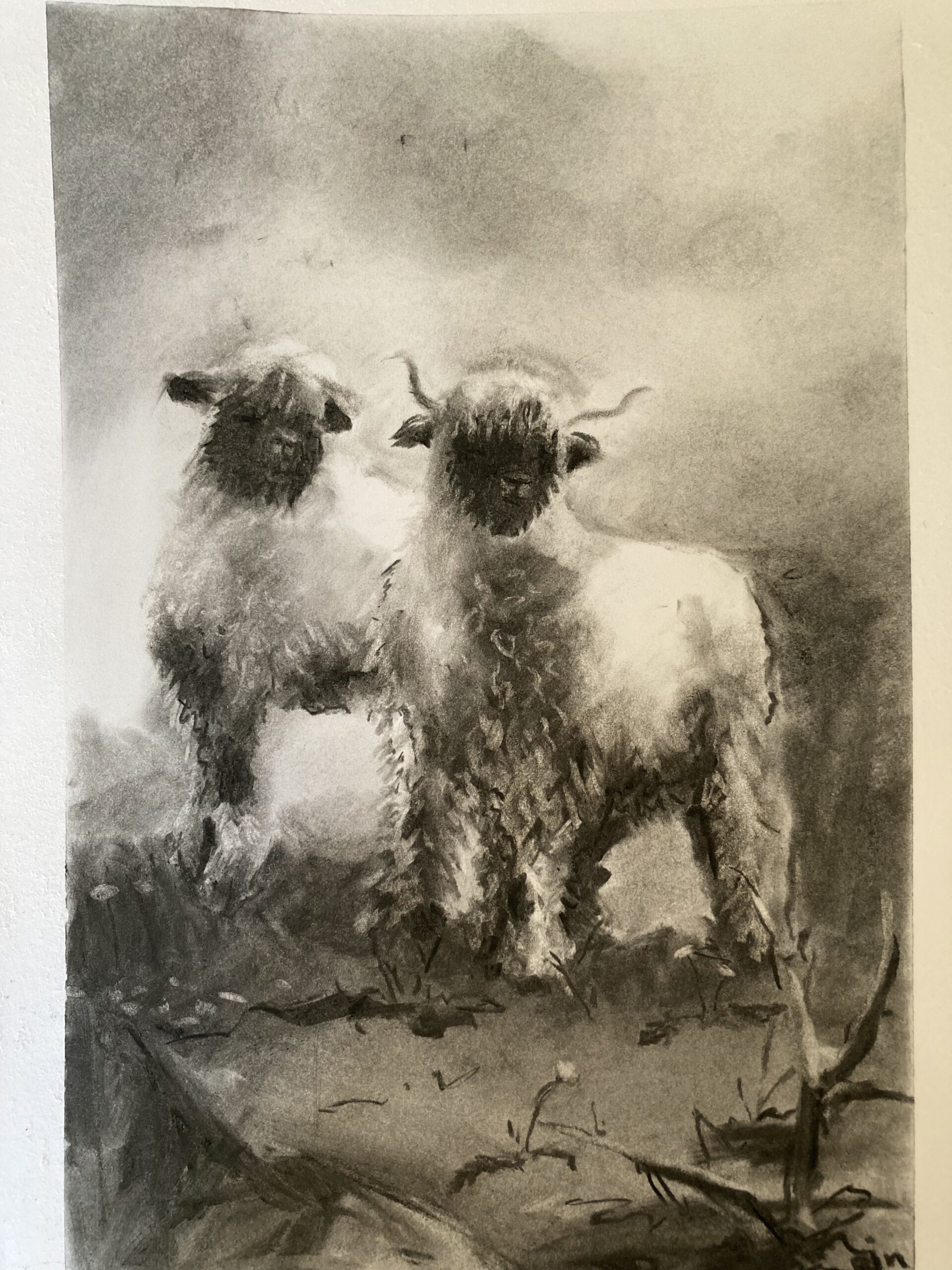 Kohle Kohle-Zeichnungen Schwarznasenschaf Schwarznasenschafe Schwarznasenschafpaar Mäckerziege Ziegenbock Ziege Schwarzkopfziege Damals Rentier Rentier Rentier Rentier Rentier