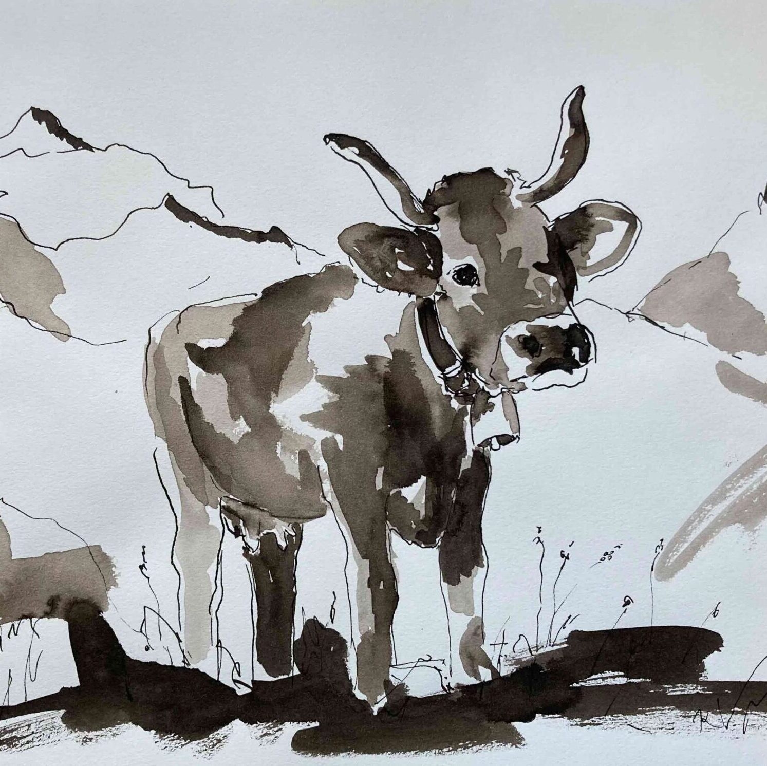 Tusch Tusch-Zeichnungen Ajou Sophie Hallo kleines Schaf im Stall Fredi Ferkelglück im Stall auf der Alp Braunvieh